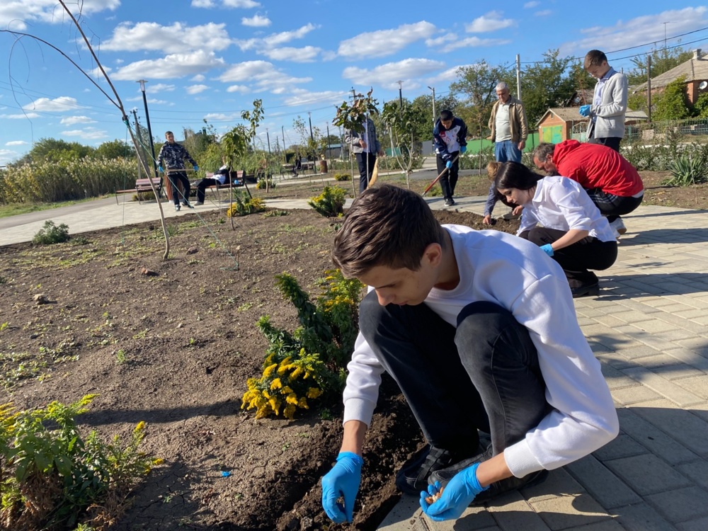 Ученики и учителя МБОУ СОШ № 9, работники Дома культуры и сотрудники Администрации собрались в парке Героев Дона на Набережной, чтобы внести свой вклад в озеленение нашего родного хутора.