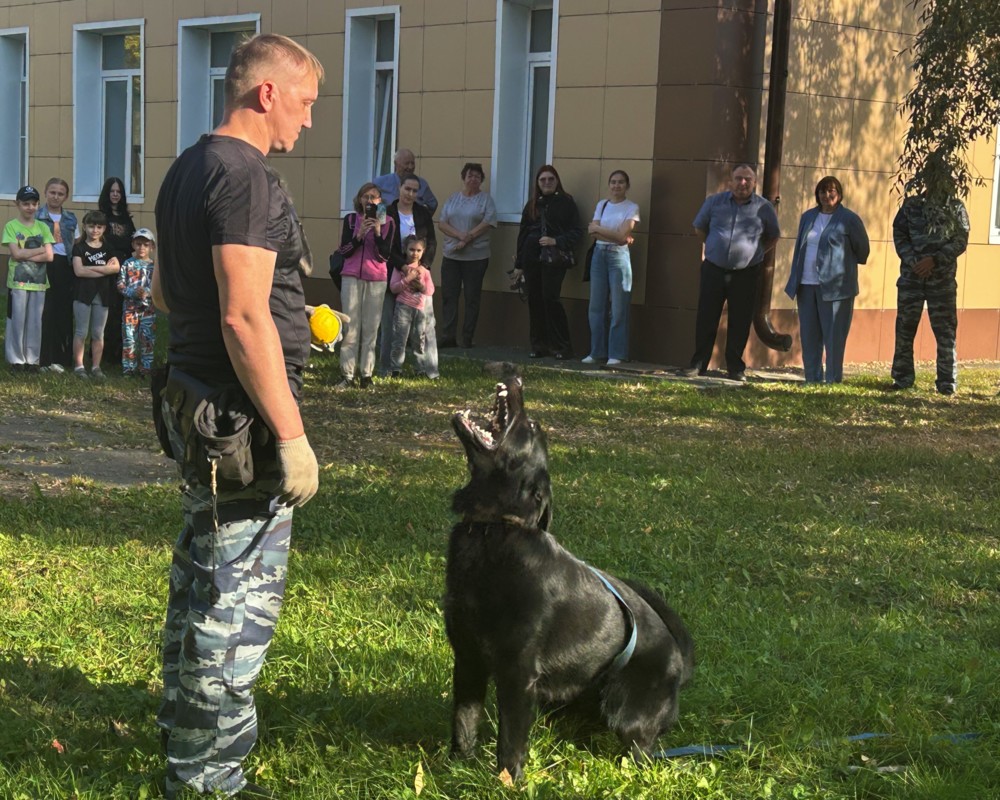 Затем младший инспектор-кинолог Сергей Юдин и его четвероногий напарник Адам выступили перед ребятами и взрослыми с показательной программой. Зрители увидели элементы повседневной работы служебного животного и творческие умения полицейской собаки.